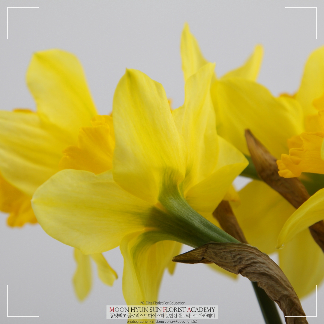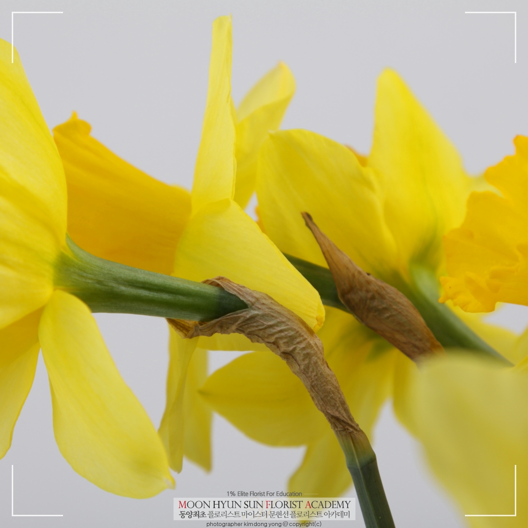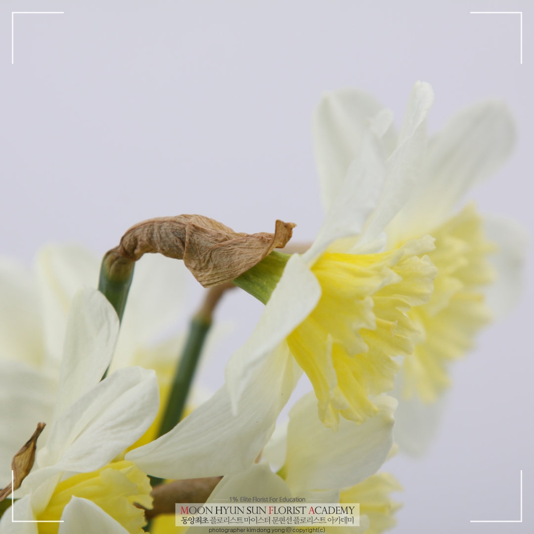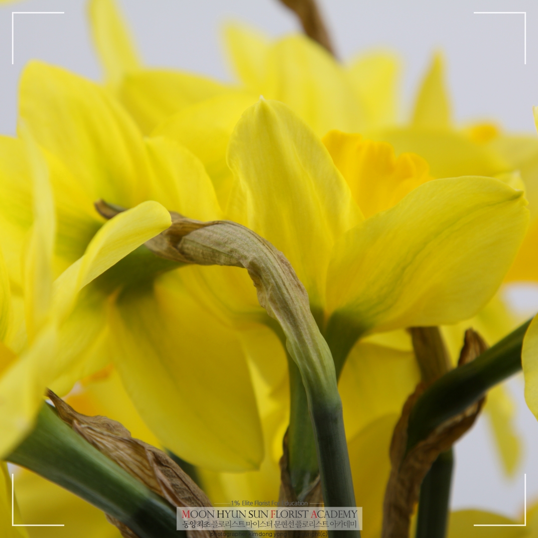 수선화를 이용해서 신부부케를 만들경우에는 수선화 줄기 안이 비어있기 때문에 줄기안으로 부케철사를 넣어서 와이어링처리해서 만들기도 합니다.