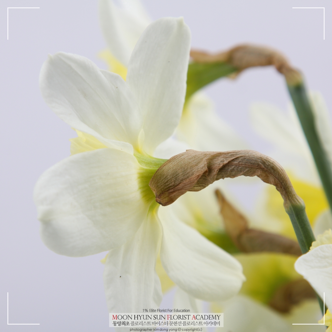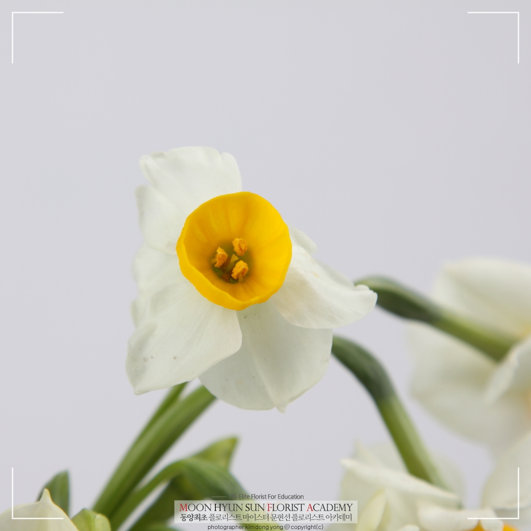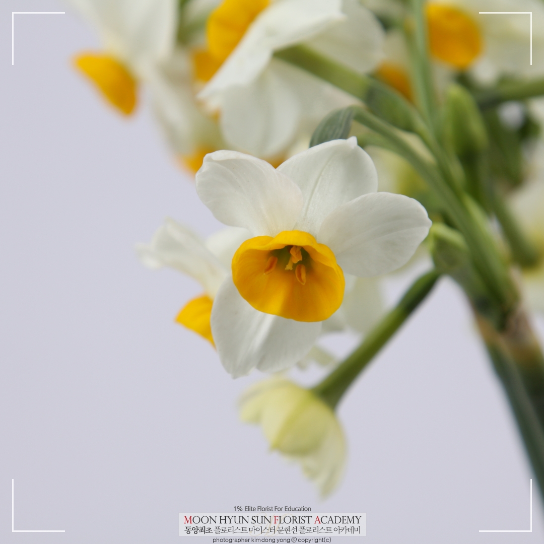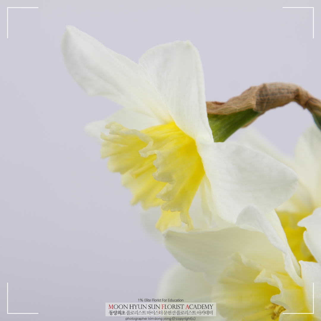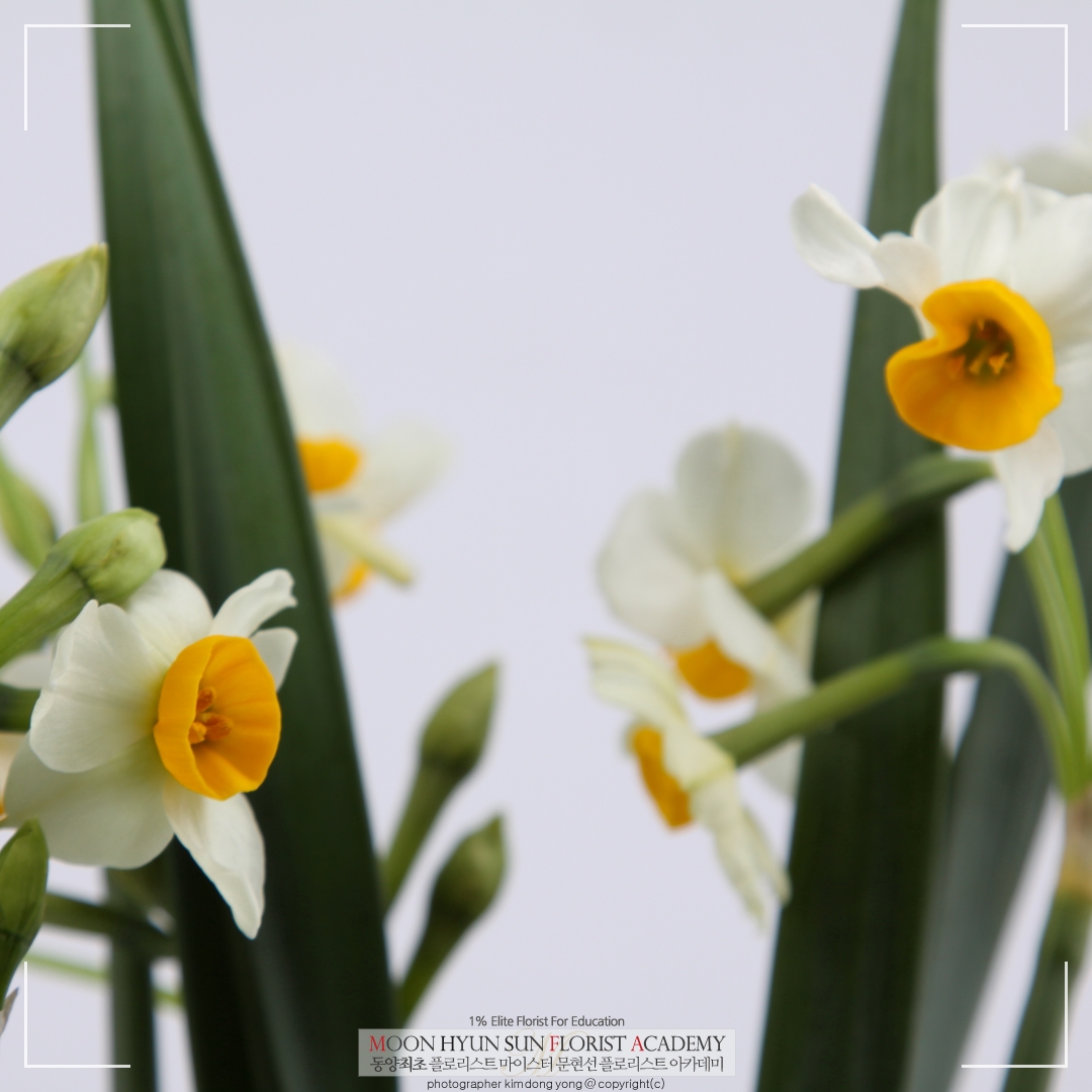수선화를 이용해서 신부부케를 만들경우에는 수선화 줄기 안이 비어있기 때문에 줄기안으로 부케철사를 넣어서 와이어링처리해서 만들기도 합니다.